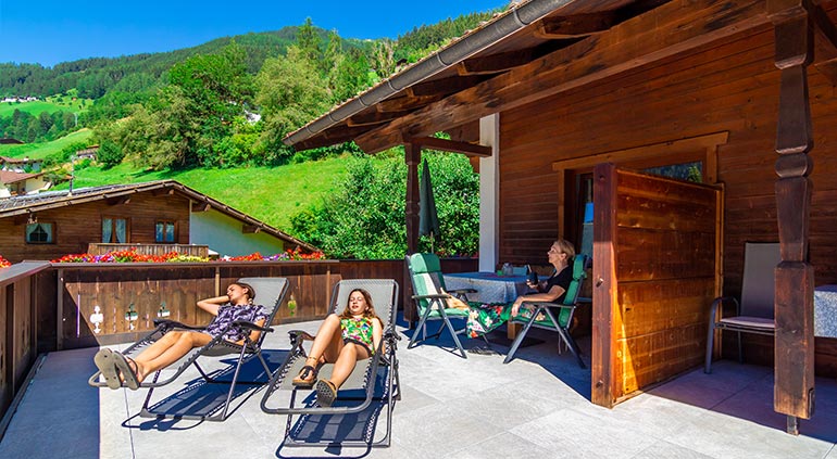 Im Sommer sorgen die Balkone mit einer wunderschönen Aussicht, die grosse Sonnenterrasse und unsere Liegewiese für Entspannung und Erholung.